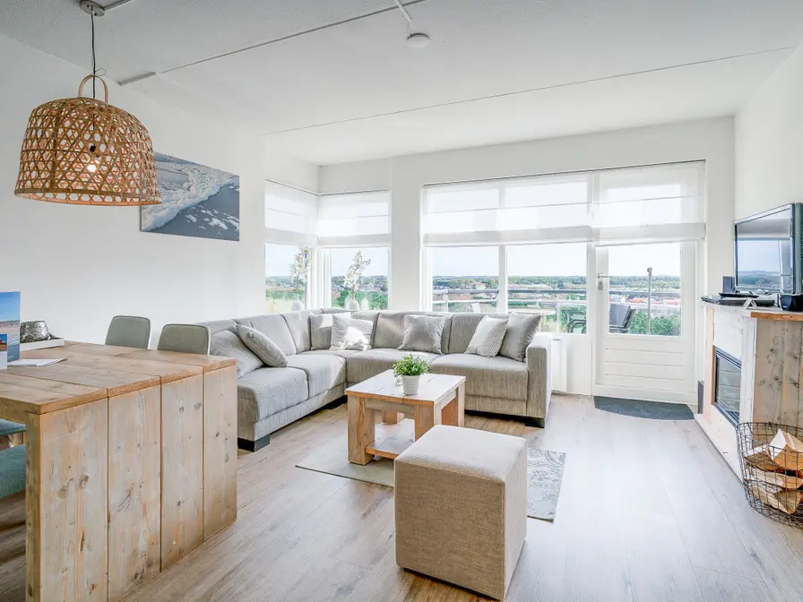 Dit appartement ligt op de tweede verdieping en biedt uitzicht over De Koog. De woonkamer heeft een zithoek met tv en muziekinstallatie. De open keuken is ingericht met vaatwasser, magnetron en verschillende koffiezetapparaat. Tevens vindt je hier een eethoek met eettafel voor 4 personen. Er zijn twee slaapkamers waarvan een met 1 tweepersoons boxspringbed en tv. De andere slaapkamer heeft 2 eenpersoons boxspringbedden. De badkamer heeft een dubbele wastafel en inloopdouche. Het toilet is apart. Dit appartement heeft een balkon op het oosten. Tuinmeubilair is aanwezig.