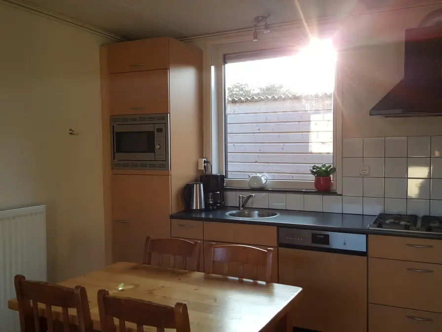 De knusse woonkamer is voorzien van een eethoek en zithoek met tv en radio. De open keuken is ingericht met combimagnetron, vaatwasser en koffiezetapparaat. Er zijn twee slaapkamers waarvan een met 1 tweepersoons bed (140 x 200). De andere slaapkamer heeft 1 stapelbed (80 x 200). Er is een badkamer met douche, wastafel en toilet. Dit vakantiehuis heeft een tuin met veel privacy. Tuinmeubilair is aanwezig.