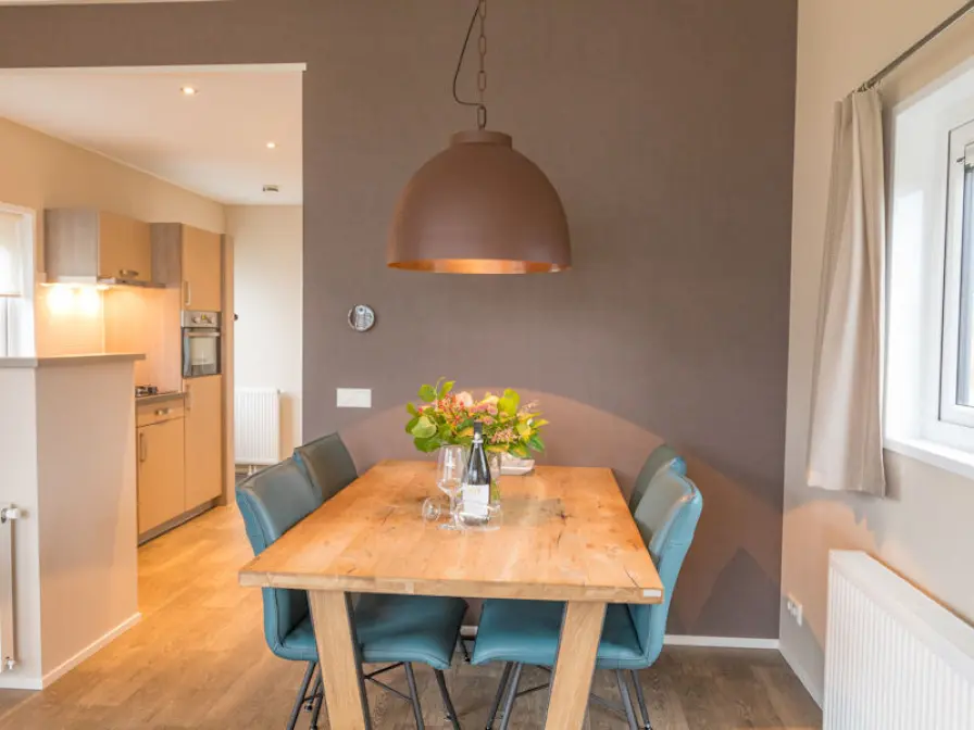 Het chalet is rustig gelegen in de duinen van het park. De open keuken is ingericht met koel-/vriescombinatie, combimagnetron, vaatwasser, broodrooster en koffiezetapparaat. De woonkamer is voorzien van een eethoek en een zithoek met lcd-tv. Er zijn twee slaapkamers met elk twee eenpersoons boxspringbedden. De badkamer heeft een douche, wastafel en toilet. Het chalet heeft een terras. Tuinmeubilair is aanwezig.