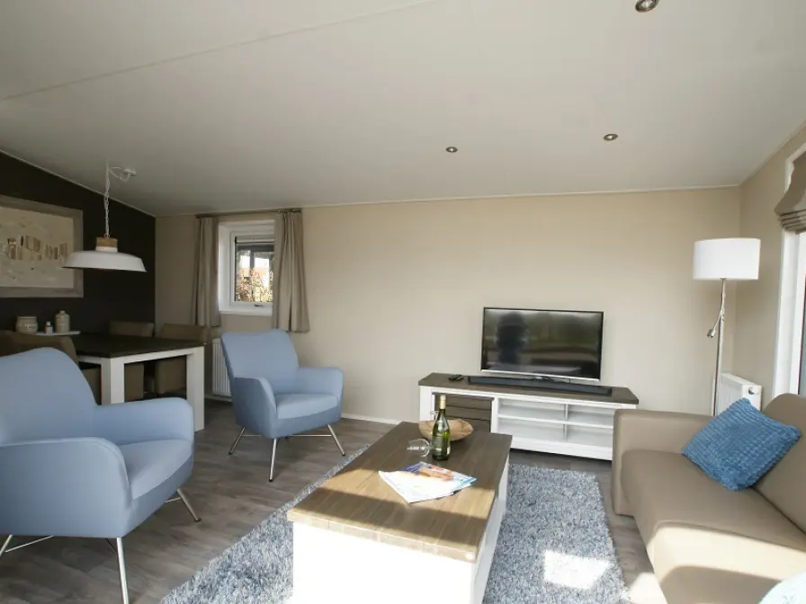Het chalet is rustig gelegen in de duinen van het park. De open keuken is ingericht met koel-/vriescombinatie, combimagnetron, vaatwasser, broodrooster en koffiezetapparaat. De woonkamer is voorzien van een eethoek en een zithoek met lcd-tv. Er zijn twee slaapkamers met elk twee eenpersoons boxspringbedden. De badkamer heeft een douche, wastafel en toilet. Het chalet heeft een terras. Tuinmeubilair is aanwezig.