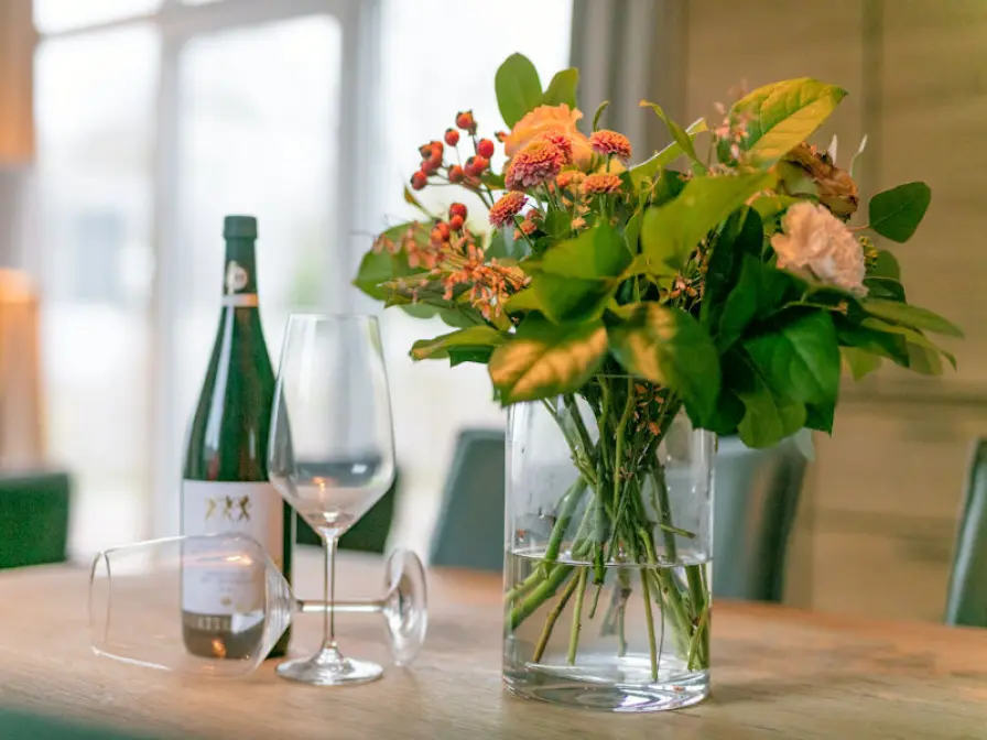 De woonkamer is voorzien van een zithoek met lcd-tv en een eethoek. De open keuken is ingericht met koel-/vriescombinatie, combimagnetron, vaatwasser, broodrooster en koffiezetapparaat. Er zijn twee slaapkamers met elk 2 eenpersoons boxspringbedden. De badkamer heeft een douche, wastafel en toilet.Het chalet heeft een terras. Tuinmeubilair is aanwezig.