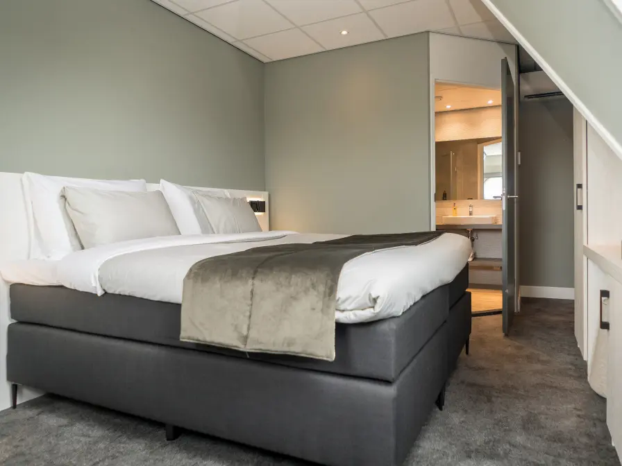 De sfeervolle Comfort kamers (20 m2) beschikken over een mooie badkamer met vloerverwarming en een heerlijke regendouche. De kamer beschikt verder over airconditioning, comfortabele boxspringbedden (180×200) met luxe topper, schrijfbureau, Nespresso koffiemachine, theefaciliteiten, gevulde minibar (tegen betaling), laptopkluisje, föhn, scheerspiegel, telefoon en een flatscreen televisie met chromecast. De kamer is gelegen op de derde verdieping (lift aanwezig), heeft schuine wanden en geen balkon.