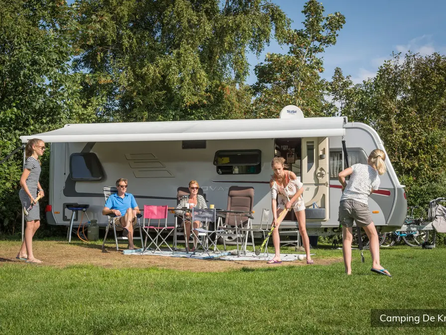 Deze Comfortplaats is gelegen aan de rand van het park, naast het Krimbos. De Comfortplaats met elektra (10 ampère), kabeltelevisie-aansluiting, water- en rioolaansluiting is bestemd voor het plaatsen van een tent of caravan met een bijzettent (max. 4 m²). Het verwarmde sanitair ligt vlakbij de parkeerplaats. Watertappunten zijn dichtbij.