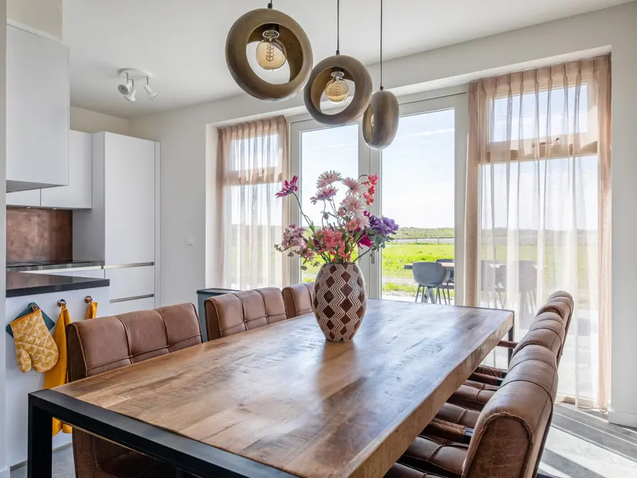Entree via hal met toilet. Woonkamer zithoek, eethoek en smart tv. Open keuken met o.a. vaatwasser, koelkast met diepvriesvak, Quooker kraan, oven, inductiekookplaten met downdraft afzuigsysteem. Je hebt hier een koffiecup machine, een senseo en een snelfilter koffiezet apparaat. Slaapkamer met 1 tweepersoons bed en ensuite badkamer met regendouche, dubbele wastafel en toilet. Op de eerste verdieping vind je de tweede en derde slaapkamer, elk met 2 eenpersoons bedden. Tweede badkamer met regendouche, dubbele wastafel en toilet. Vanuit de woonkamer kom je via openslaande deuren op het terras met tuinmeubelen. Fijn gazon met uitzicht.