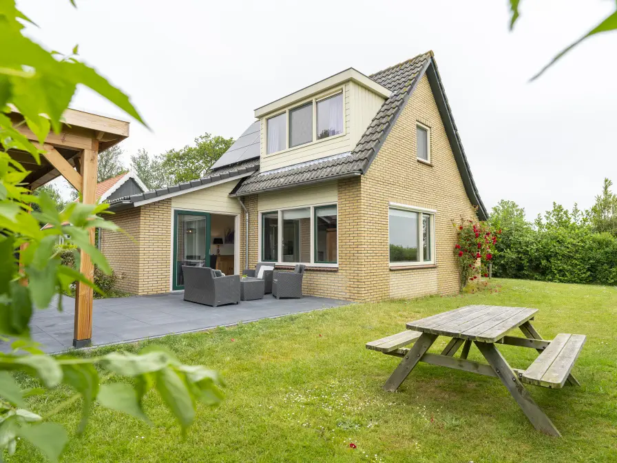 De woonkamer heeft een zithoek met tv en eethoek. De open keuken is ingericht met koelkast, combimagnetron, vaatwasser en vriezer. De badkamer heeft een douche. Er is een apart toilet. Op de bovenverdieping zijn drie slaapkamers met ieder twee eenpersoonsbedden. Dit vakantiehuis heeft een ruime, door bomen en struiken omgeven tuin met terras. Tuinmeubilair is aanwezig.