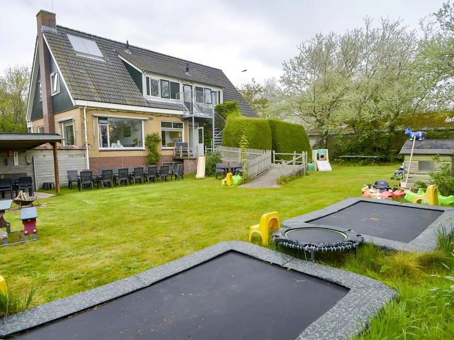 Op de begane grond is de ruime woonkamer met twee aparte zitjes, openhaard incl. hout, twee tv’s en dvd spelers, elektrisch drumstel, PS2, Wii incl. veel leuke spelletjes. Een compleet uitgeruste keuken met vaatwasser, heteluchtoven/ grill, magnetron, elektrische gourmetplaten, elektrische poffertjespannen, twee vierpitsgasstellen, twee koelkasten met diepvries. Verder zijn er op begane grond nog een toilet, badkamer met ligbad met toilet en wastafel, en een invalidenbadkamer met aangepast toilet, wastafel en douchestoel. Wasmachine en wasdroger zijn aanwezig. Er zijn drie slaapkamers (twee keer tweepersoons, één keer driepersoons) met wastafelmeubel. Op de eerste etage zijn nog zes slaapkamers (twee keer tweepersoons, vier keer driepersoons) ook met wastafelmeubel. Het zijn allemaal eenpersoonsbedden (80 x 200cm). Verder één apart toilet, één badkamer met douchejets en toilet, één badkamer met bubbelbad en douche en één badkamer met toilet, douche en infraroodsauna. Verder is er nog een zolder met o.a. verkleedkleren, spelletjes, voetbalspellen, drie sjoelbakken, fitnessapparaten, zonnebank met infraroodknop, chi, massagebank, honderden cd`s, dvd`s en boeken. Achter huis is een grote beschutte, afgesloten tuin met tuinstoelen, buitenkeuken, twee grote trampolines, één kleine tafeltennis en een volleybal/ voetbalveld. Ook is er een eigen parkeerterrein voor zeven auto`s. Je kunt gratis gebruikmaken van de vele fietsen, tandems, twee elektrische fietsen, skelters, enzovoort.