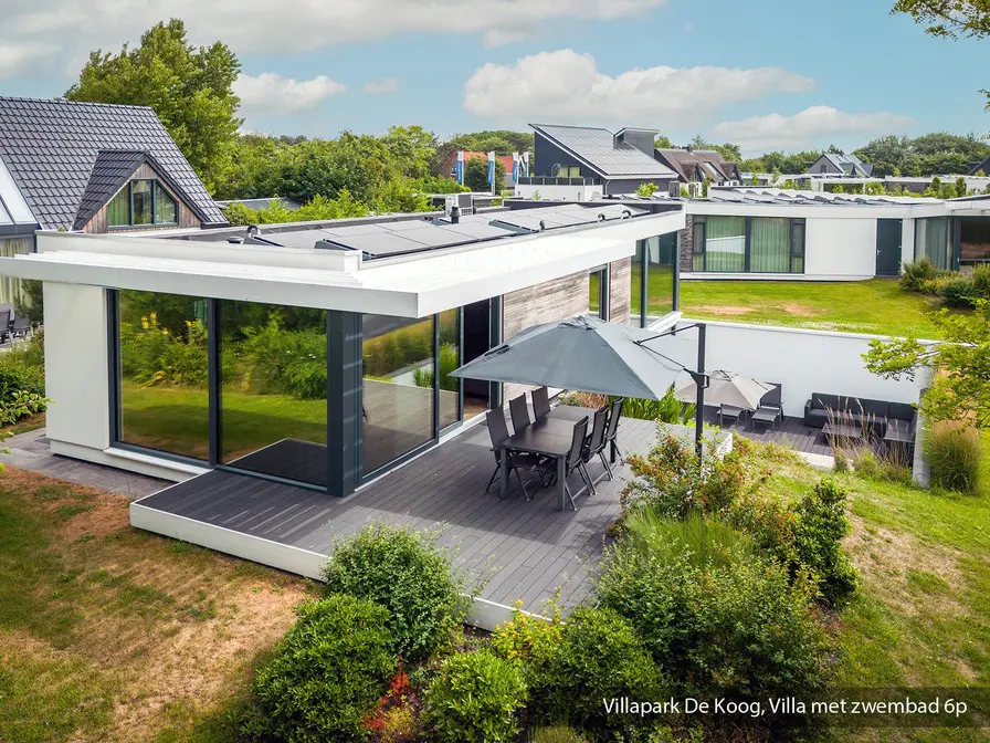 Deze 6-persoons villa is uitgerust met een privé zwembad! Via de hal kom je in de woonkamer met zithoek, eethoek en grote smart-tv. De keuken heeft een 4-pits kookplaat, afwasmachine en koffiezetapparaat. Vanuit de woonkamer heb je via de grote glazen schuifpui toegang tot een heerlijk terras met tuinmeubels en twee ligstoelen. Er zijn drie slaapkamers met elk 2 eenpersoons bedden en een eigen badkamer. Twee badkamers zijn voorzien van een douche, wastafel en wc. De derde badkamer is voorzien van een ligbad, wastafel en wc. Twee slaapkamers bevinden zich op de begane grond. In het souterrain van deze designvilla vind je de derde slaapkamer. Bijzonder: Je hebt een privé binnenzwembad in het souterrain. Hier vind je ook een stoomdouche en sauna en heb je daarnaast toegang tot een tweede terras met tuinmeubels en 2 ligstoelen.