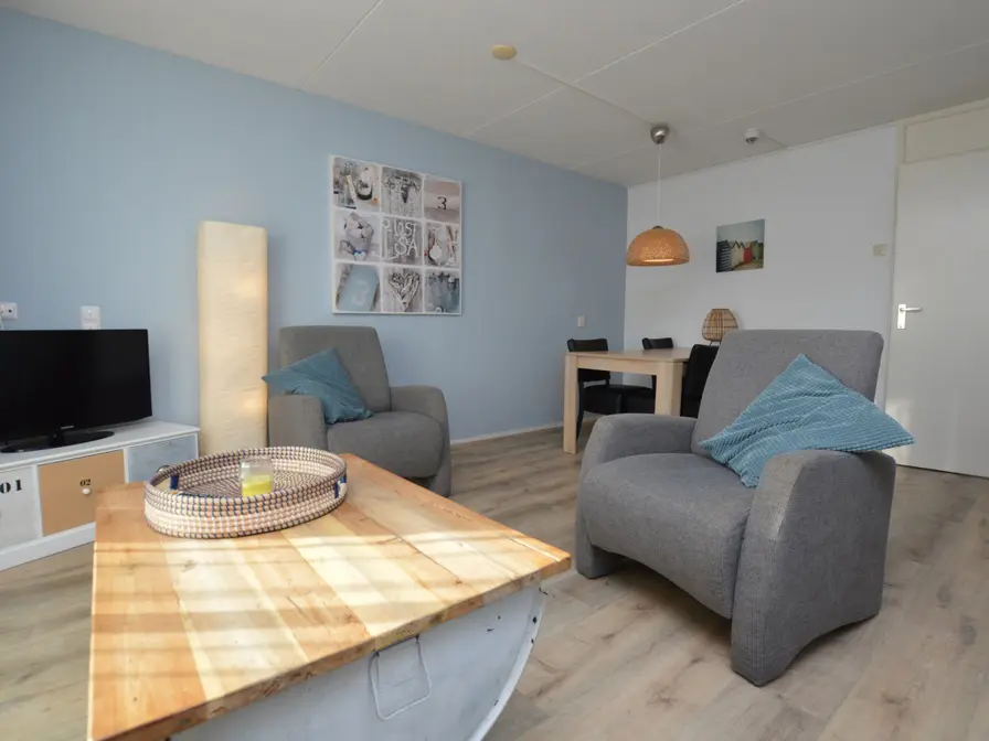 Dit appartement ligt op de eerste verdieping. De woonkamer heeft een eethoek en een zithoek met tv. De open keuken is ingericht met koelkast, 4-pits elektrische kookplaat, magnetron en koffiezetapparaat. In de slaapkamer staan twee eenpersoons bedden. De badkamer heeft een douche en wastafel. Er is een apart toilet. Het appartement heeft een balkon. Tuinmeubilair is aanwezig.