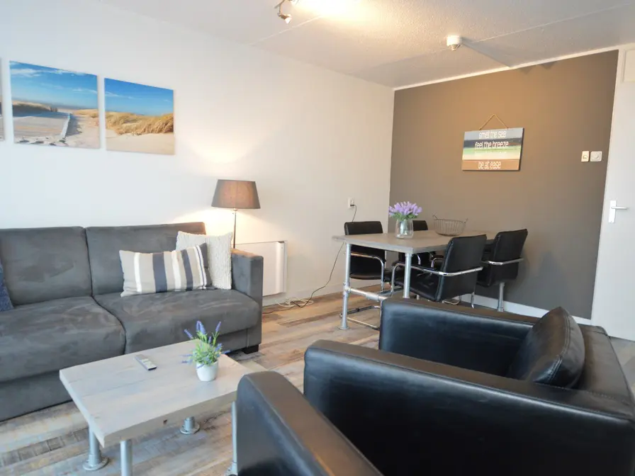 Dit appartement ligt op de eerste verdieping. De woonkamer heeft kabel smart-tv. De open keuken is volledig ingericht met o.a. koelkast met vriesgedeelte, inductiekookplaat, combimagnetron en koffiezetapparaat. Er is een tweepersoons slaapbank met tweepersoons matras in de woonkamer en in de slaapkamer staan twee eenpersoons boxspringbedden. Het appartement is echter niet geschikt voor 4 volwassenen. De badkamer heeft een douche en wastafel en er is een apart toilet. Het appartement heeft een ruim balkon aan de oostzijde.