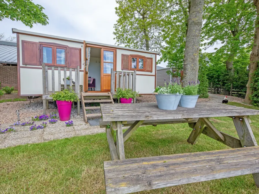 De pipowagen staat op een privé plek in tuin. en biedt een weids uitzicht op het vissersdorp Oudeschild en de grazende koeien in de weide. De leefruimte heeft een zit-/eethoek met tafeltje met stoelen en een bank. De keuken heeft een gasfornuis, Senseo, koelkast en wastafel. Er zijn 2 bedstedes voor 2 personen. De badkamer (die zich naast de Pipowagen bevindt) heeft een wastafel, douche en toilet. Deze pipowagen heeft een eigen terras en tuin met picknick tafel.